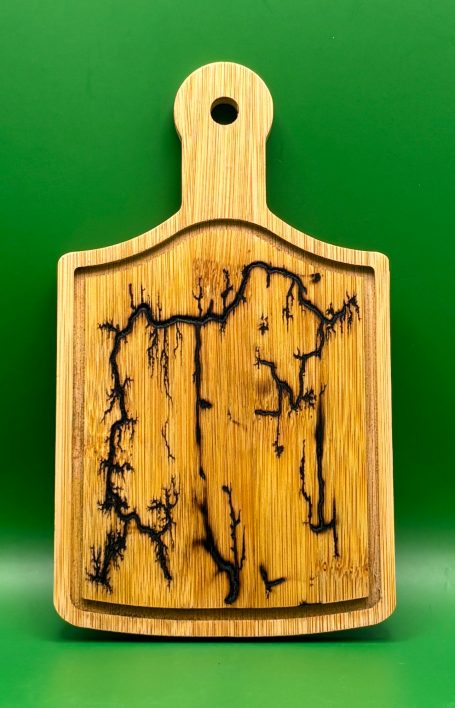 La figure de Lichtenberg est un phénomène fascinant qui illustre une personnalisation unique grâce à la haute tension appliquée sur du bois. Lorsqu'un courant électrique traverse le bois, il crée des tracés complexes qui ressemblent à des fractales. Ce processus, non seulement spectaculaire sur le plan visuel, permet également de personnaliser des objets en bois en intégrant ces motifs délicats et aléatoires, faisant de chaque pièce une œuvre d'art unique. Ainsi, la fusion de la science et de l'esthétique se manifeste à travers cette technique, offrant une nouvelle dimension à la création artisanale.